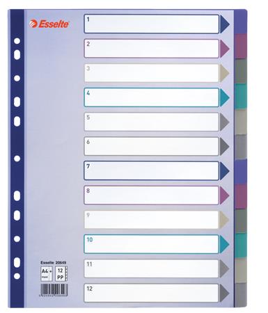 Dividers, plastic, A4 maxi, 12 parts, ESSELTE, colorful