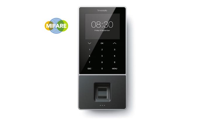 TimeMoto TM-828 SC - Clocking in system with Fingerprint, Mifare and RFID sensor including TimeMoto Cloud management software