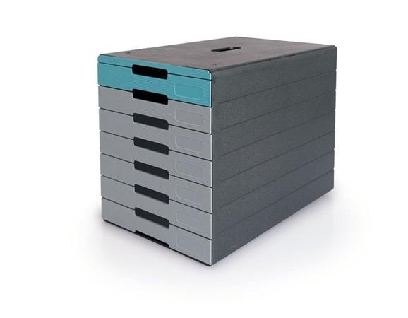 Drawer cabinet, plastic, 7 drawers, DURALBE "Idealbox pro 7", blue