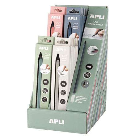 Mechanical pencil display, HB, hexagonal, with refill tip, APLI "Infinite", assorted colours