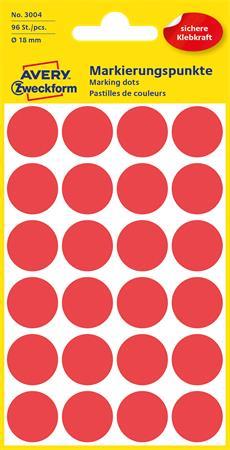 Label, 18 mm, circular, AVERY ZWECKFORM, red, 96 label/pack