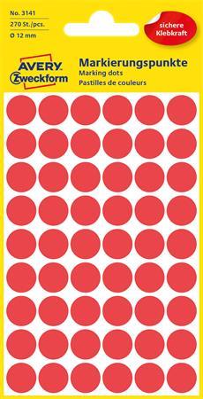 Label, 12 mm, circular, AVERY ZWECKFORM, red, 270 label/pack