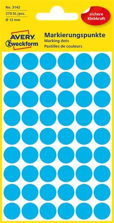 Label, 12 mm, circular, AVERY ZWECKFORM, blue, 270 label/pack