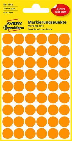 Label, 12 mm, circular, AVERY ZWECKFORM, neon orange, 270 label/pack