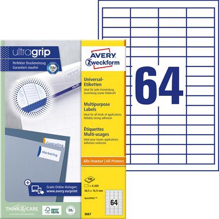 Label, universal, 48,5x16,9 mm, AVERY ZWECKFORM, 6400 label/pack