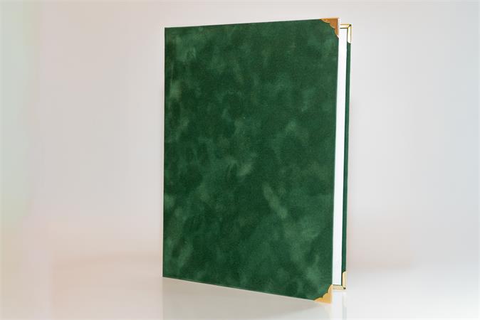 Diploma holder, A4, exclusive, plush, 4 metal corners, green