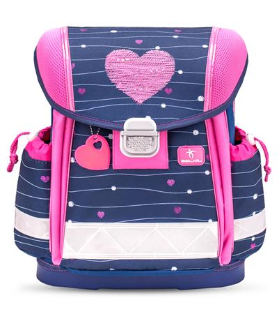 School bag, metal buckle, BELMIL "Classy Simple Hearts", pink heart