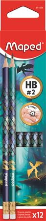 Graphite pencil with eraser, HB, triangular, MAPED “Dragon”, 12 pcs