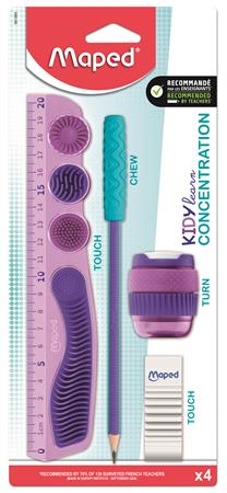 Stationery set, 4 pieces, MAPED “Kidy Learn Concentration”, purple