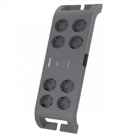 Extension lead, 8 sockets, surge-protect, 2 m cable, PHILIPS, dark grey