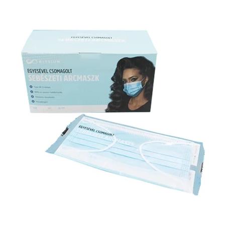 Paper mask, single packed, disposable, with rubber band, 50 pcs, blue