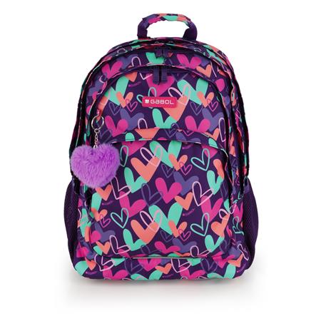 Backpack, schoolpack, zippered, GABOL "Kokoro", purple, hearts
