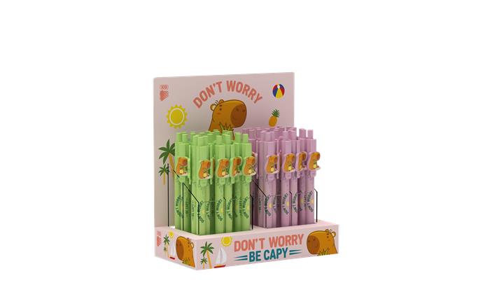 Ballpoint pen display, 0.8 mm, retractable, assorted, ICO "Capybara", blue