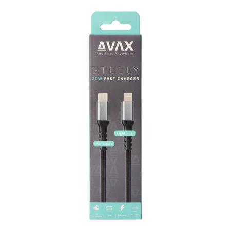 Charger cable, USB-C - USB-C, 27W, 1 m, AVAX "CB316 Glowy", white