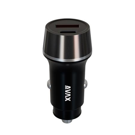 Car charger, USB-C, USB-A, AVAX "CC340B", black