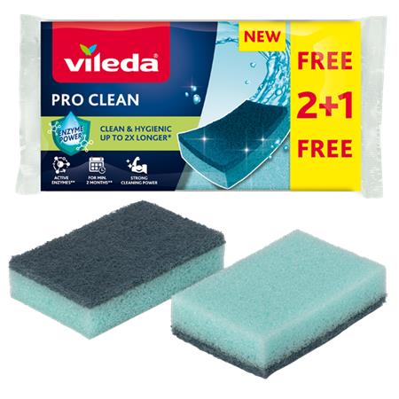 Dish sponge, 2+1 pcs, VILEDA "Pro Clean", blue