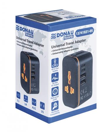 Travel adapter, universal, DONAU "Travel 205", black